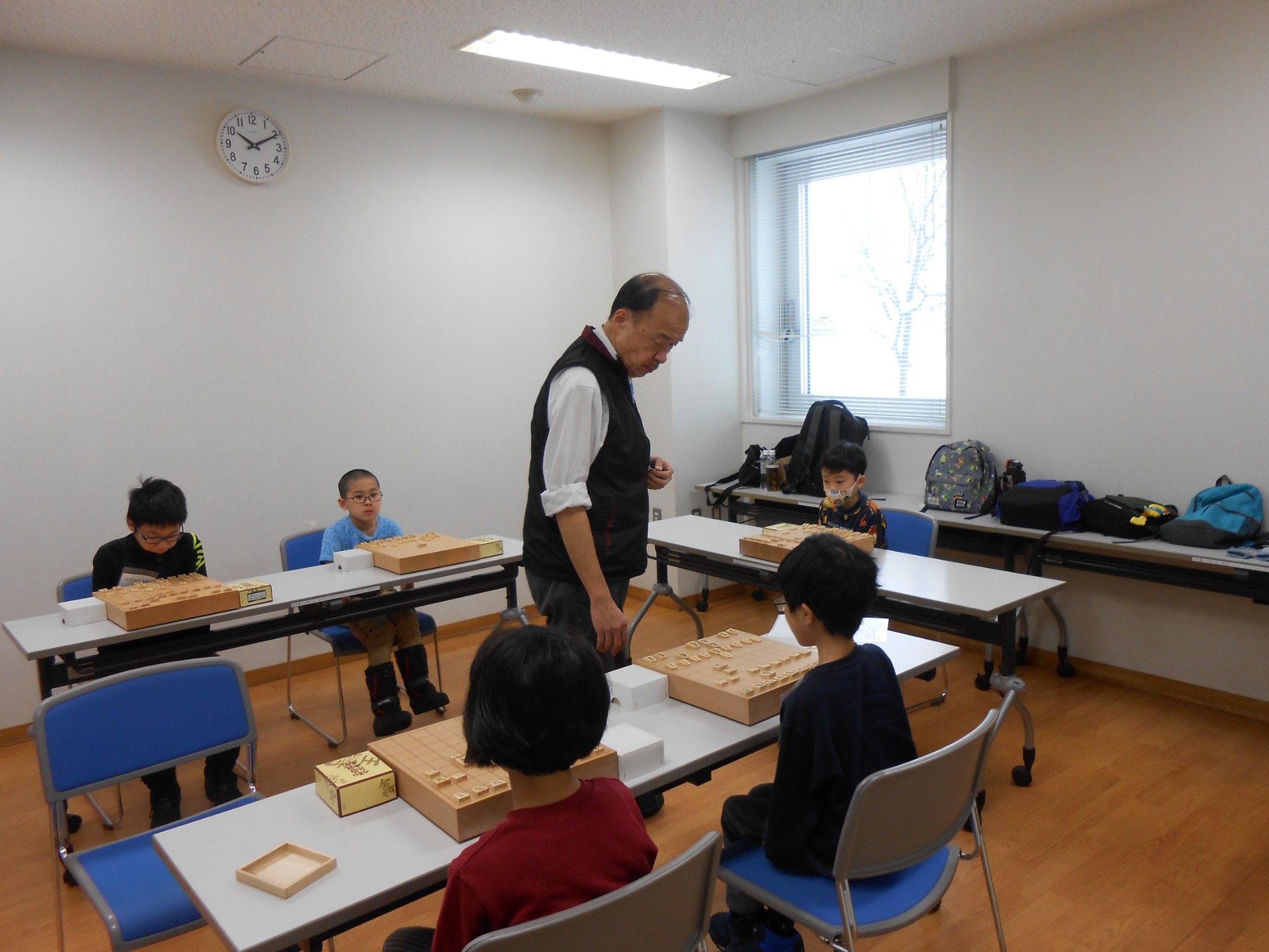 1月8日~10日の日程で、今年も「冬休み子ども将棋教室」を開催しました。初日の8日は雪降りしきる悪天候となりましたが、5名全員揃って教室がスタート。この日は講師の佐々木先生の指導対局を中心に、定石や詰将棋等、一人一人の棋力に合わせ指導されていました。